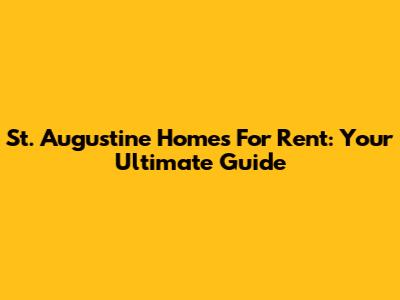 St. Augustine Homes For Rent: Your Ultimate Guide